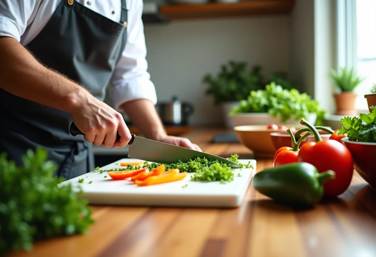 Pour un végétarien ou une personne qui prépare majoritairement des légumes, des fruits, des céréales ou des légumineuses, un bon couteau fait toute la différence : une lame bien aiguisée et adaptée permet de conserver une texture croquante, d’éviter d’écraser les ingrédients, et d’augmenter le plaisir de découpe. Sur knivesandtools.fr, plusieurs guides d’achat expliquent comment choisir ou composer un set de couteaux de cuisine de base autour de quatre lames (couteau de chef, couteau à pain, couteau d’office, un petit couteau bec d’oiseau) comme base solide. Ainsi, même pour la cuisine végétarienne, le fait d’avoir une palette de couteaux bien pensée permet de mieux travailler des carottes, choux-fleurs, aubergines, herbes fraîches, etc. Et si vous aimez la qualité et le design, vous pouvez opter pour des couteaux de cuisine japonais!