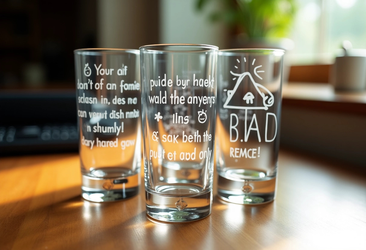 La gravure laser offre une autre option pour décorer vos verres. Cette méthode utilise un faisceau laser pour graver directement sur le verre, créant des designs précis et permanents. La gravure laser est particulièrement adaptée pour des logos ou des textes de petite taille, garantissant une finition élégante et professionnelle.