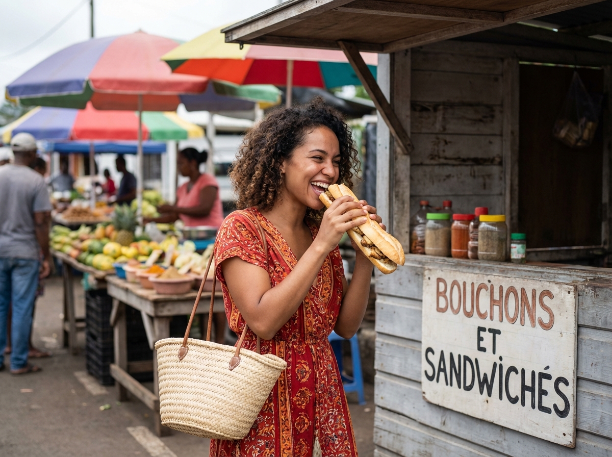 Le bouchon gratiné apparaît sous différentes formes, le sandwich créole ose des garnitures inattendues comme le rougail, tandis que le zembrocal se décline en version barquette, prêt à être dégusté sur le pouce. Chaque snack a sa touche, son petit secret, qui donne envie d’y revenir.